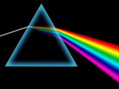 Еще Исаак Ньютон установил, что белый солнечный свет состоит из смеси .лучей всех цветов радуги. При переходе из воздуха в стекло цветовые тучи преломляются в разной мере. Поэтому если па пути узкого солнечного луча поставить трехгранную призму, то после выхода луча из призмы па экране возникает радужная полоска, которая называется спектром.