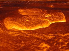 Сотрудник НАСА Элен Стофан вспоминает: «Нашему взору предстали дугообразные разломы протяженностью 250-300 километров. Их опоясывали высокие хребты, чем-то напоминающие наши горы. К тому же на их вершинах располагались вулканы. Мы сразу задались вопросом: как они сформировались? Мы такого никогда не видели!.. Гигантские вулканы, напоминающие пузыри, когда-то извергали лаву из каждой расщелины. Казалось, что вся планета покрыта бороздами. По форме они напоминали реки, растекающиеся по всей поверхности планеты, но при такой высокой температуре, как здесь, воде неоткуда было бы взяться, поэтому это, скорее всего была лава. Там были и другие вулканы: их приплюснутые верхушки по форме напоминали блины. Создавалось впечатление, что кто-то их раскидал по всей поверхности. Некоторые вулканы были похожи на раздавленных насекомых. Куда бы вы ни посмотрели — всюду вулканы и все разные. Такое ощущение, что на планете правят одни вулканы. Но как такое могло получиться? Это для нас оставалось загадкой».