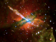 В центре скопления галактик, находящегося в созвездии Девы, на расстоянии около 50 миллионов световых лет от Земли, находится гигантская галактика М87; она испускает рентгеновские лучи с интенсивностью, эквивалентной миллиарду Солнц. Из ядра этой сверхгигантской галактики извергается извивающаяся струя вещества длиной около 6000 световых лет. Она светится, как 10 миллионов Солнц, и состоит из капель, каждая размером в десятки световых лет.