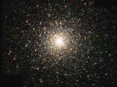 В противоположность открытым, шаровые скопления представляют собой сферы, плотно заполненные звездами, которых там насчитываются сотни тысяч и даже миллионы. Звезды в этих скоплениях расположены так густо, что, если бы наше Солнце принадлежало к какому-нибудь шаровому скоплению, мы могли бы видеть в ночном небе невооруженным глазом более миллиона отдельных звезд. Размер типичного шарового скопления — от 20 до 400 световых лет.